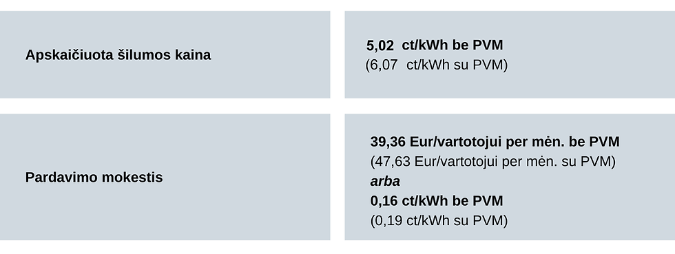 Kaina apskaičiuota vadovaujantis 2019 m. lapkričio 28 d. Klaipėdos miesto savivaldybės tarybos sprendimu Nr. T2-339 „Dėl UAB „Miesto energija“ Klaipėdos miesto laisvojoje ekonominėje zonoje tiekiamos šilumos bazinės kainos dedamųjų nustatymo“ nustatytomis bazinės kainos dedamosiomis.